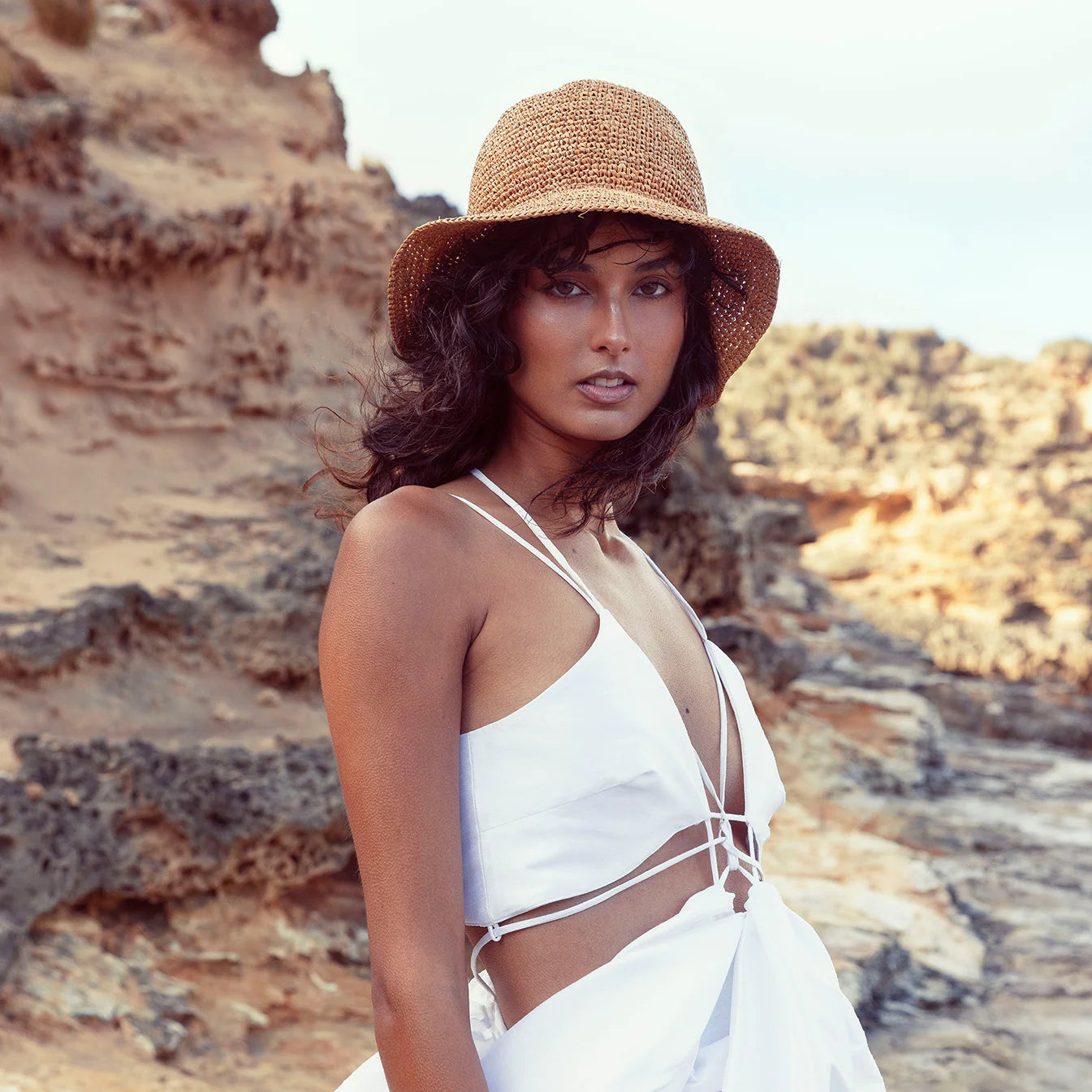 The Oodnadatta Fedora in Natural is woven with natural raffia straw to create a unique bucket hat. Made for practicality, the curved silhouettes add a touch of comfort to your everyday style.