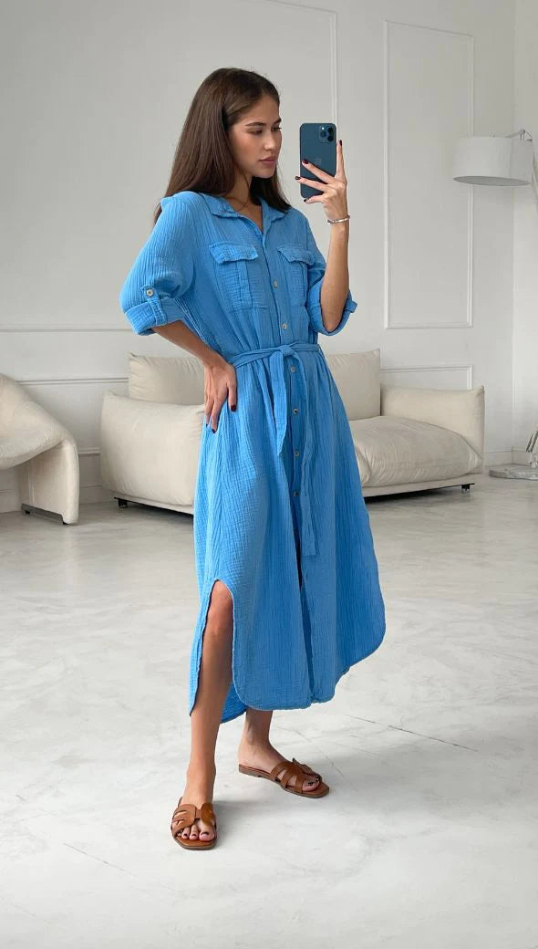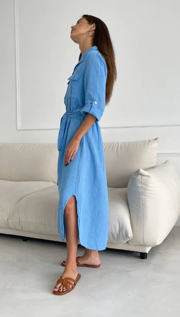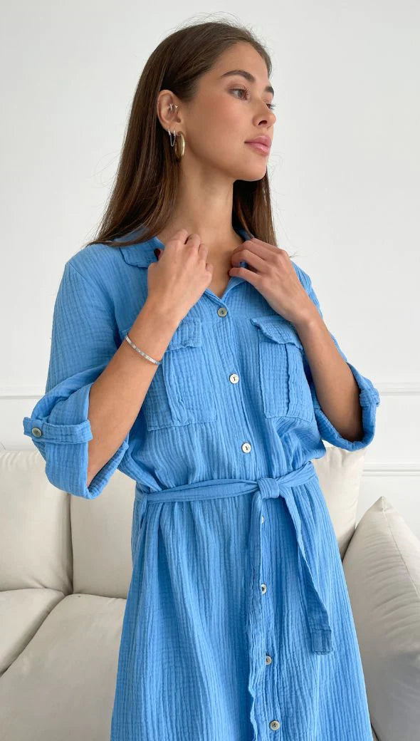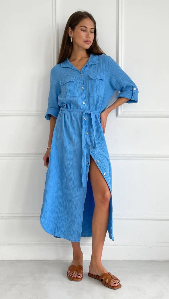 Cassis is the perfect long shirt dress for an effortless chic outfit this season. Adjustable tie belt to make it a perfect and flattering fit. Garment dyed in Italy in the softest gauzy cotton - this is a perfect addition to any warm weather wardrobe. Team with summer flats or sneakers for a great day look - or as an overshirt on top of any relaxed look.