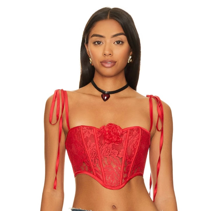 For LOVE & LEMONS RED CORSET FLOWER TOP