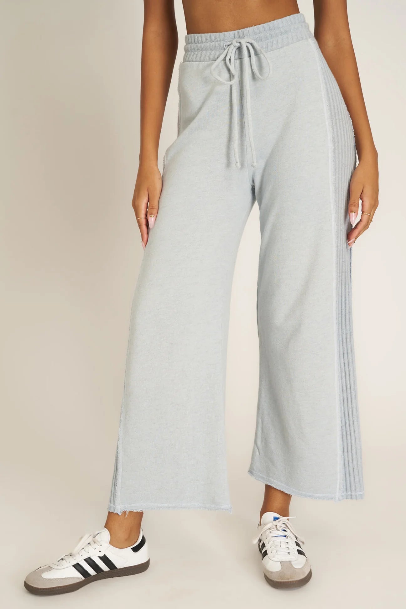 The Get Ready Mixed Wide Leg Pant features a blend of French terry and wide ribbed fabric along the sides for a stylish, textured look. With a functional drawcord for a customizable fit and exposed raw edge seam details and hemline, these pants give a lived-in look. Pair them with the Get Ready Mixed V-Neck Pullover for a match made in heaven that’s perfect for lounging or casual outings.