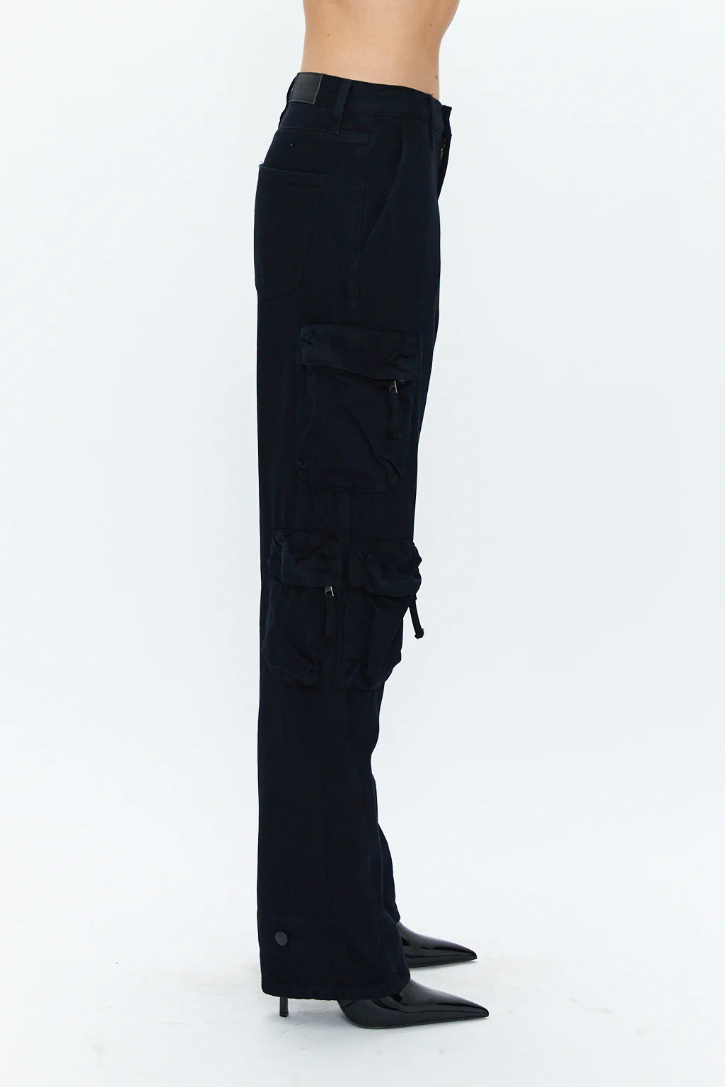 A nod to the skater fashion of the '90s, but in a chic black color to dress it up. This best selling style features 3D pockets to elevate the cargo trend. This pant is slightly oversized for a relaxed mid rise waist and adds a level of comfort with the loose straight leg fit.