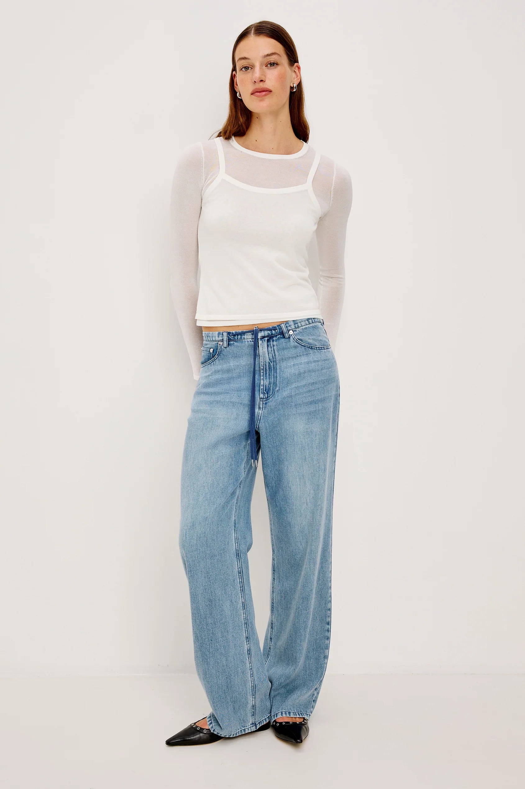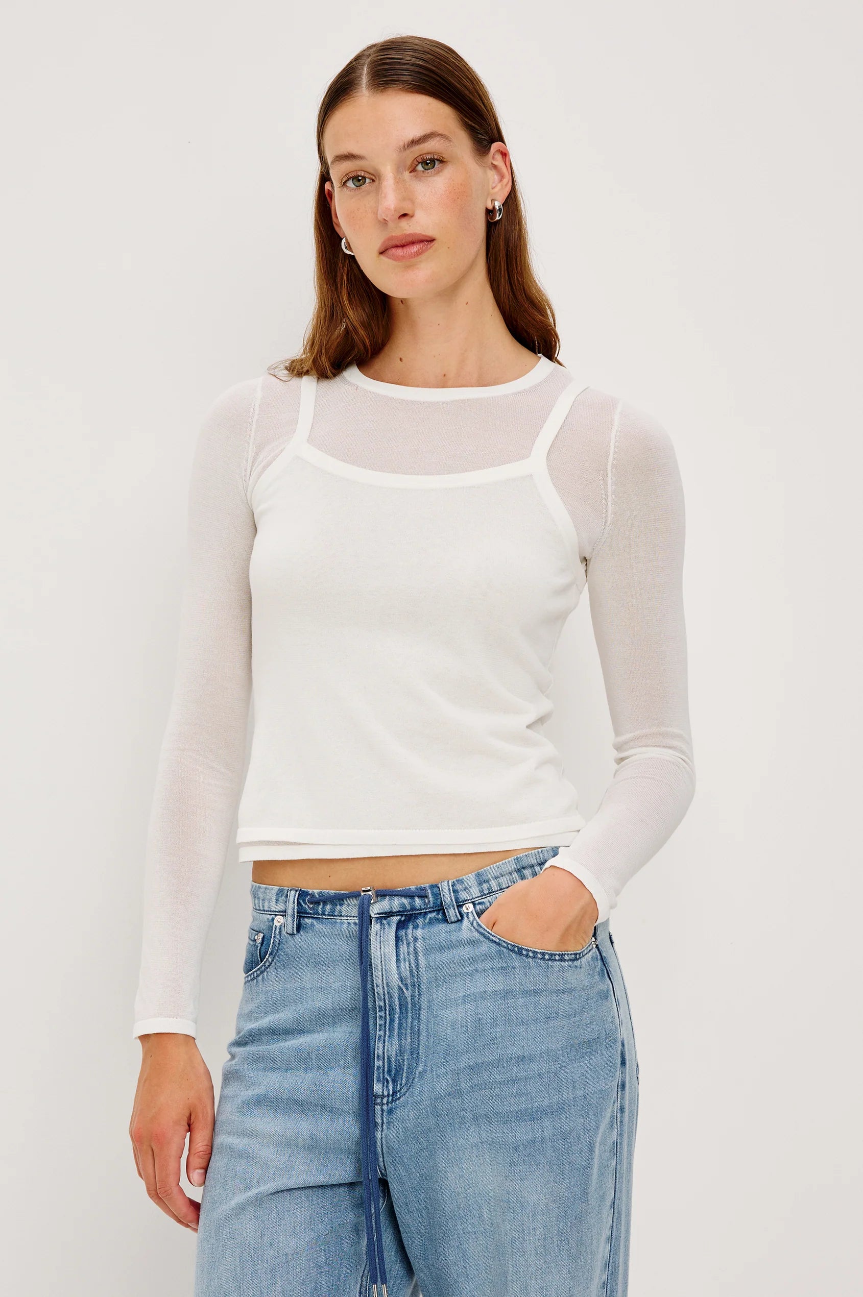 The Lovisa is a cotton top with built-in dimension. A lightweight tank and long-sleeve crewneck come together in a tonal layered look.