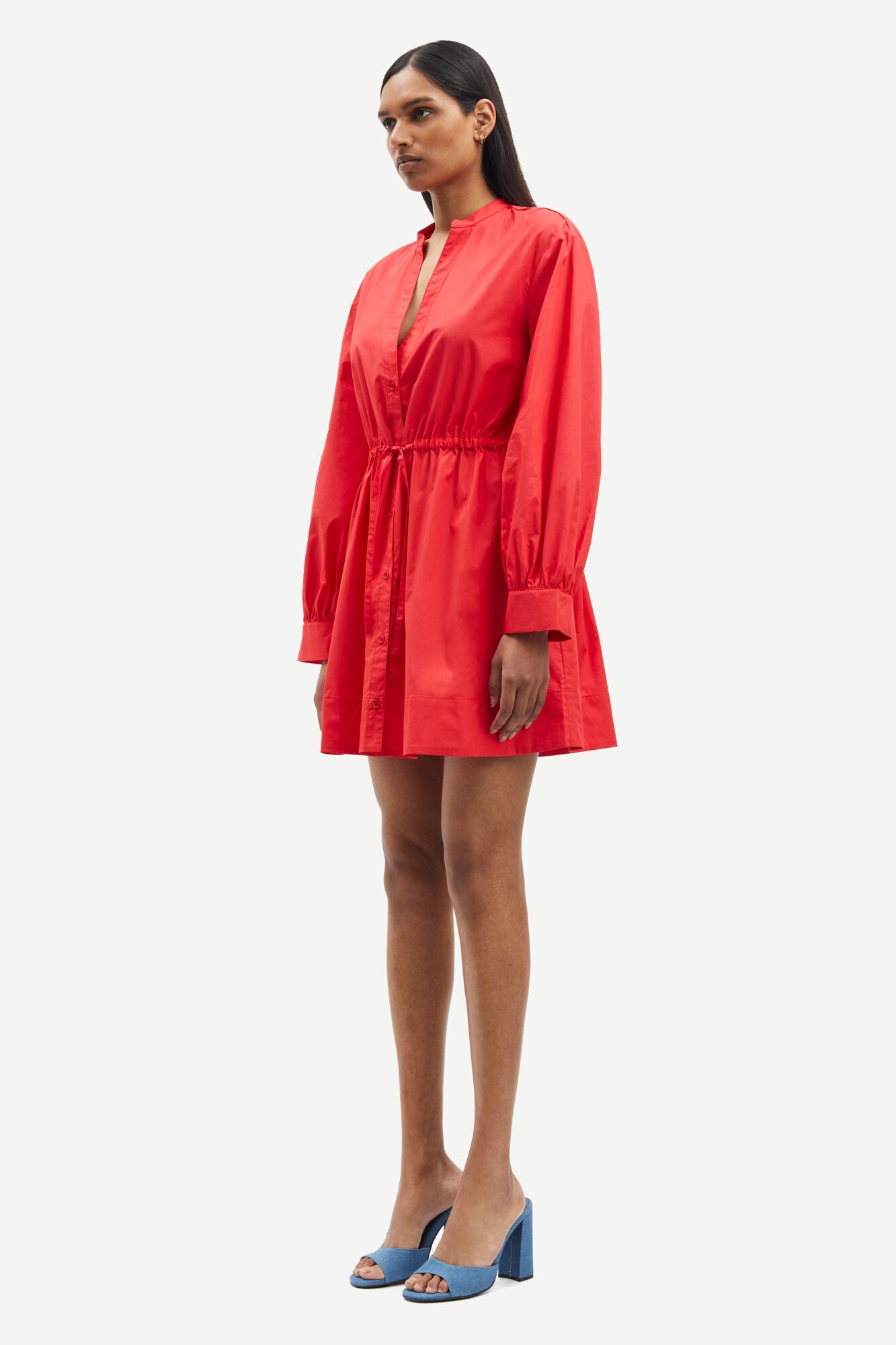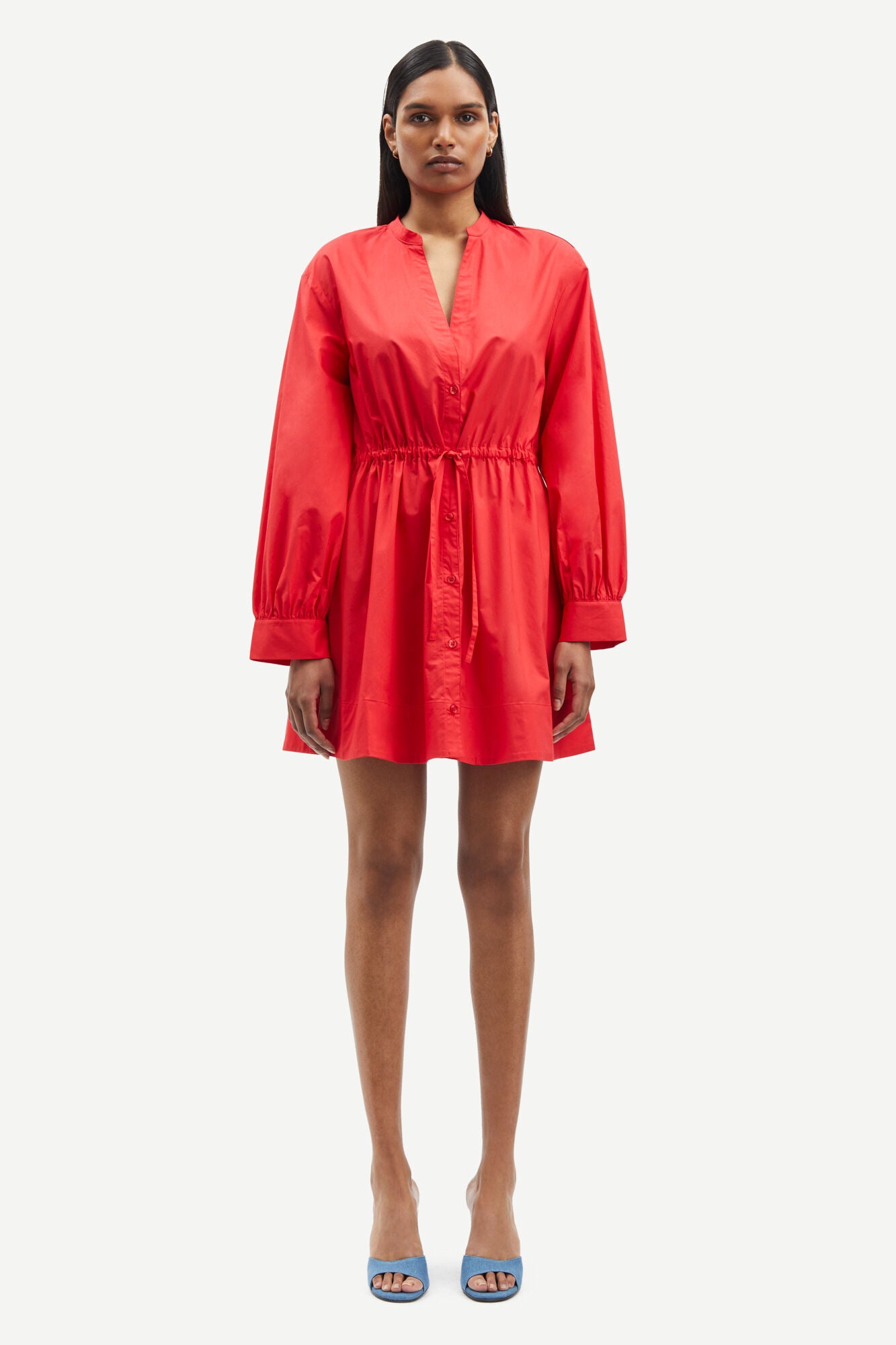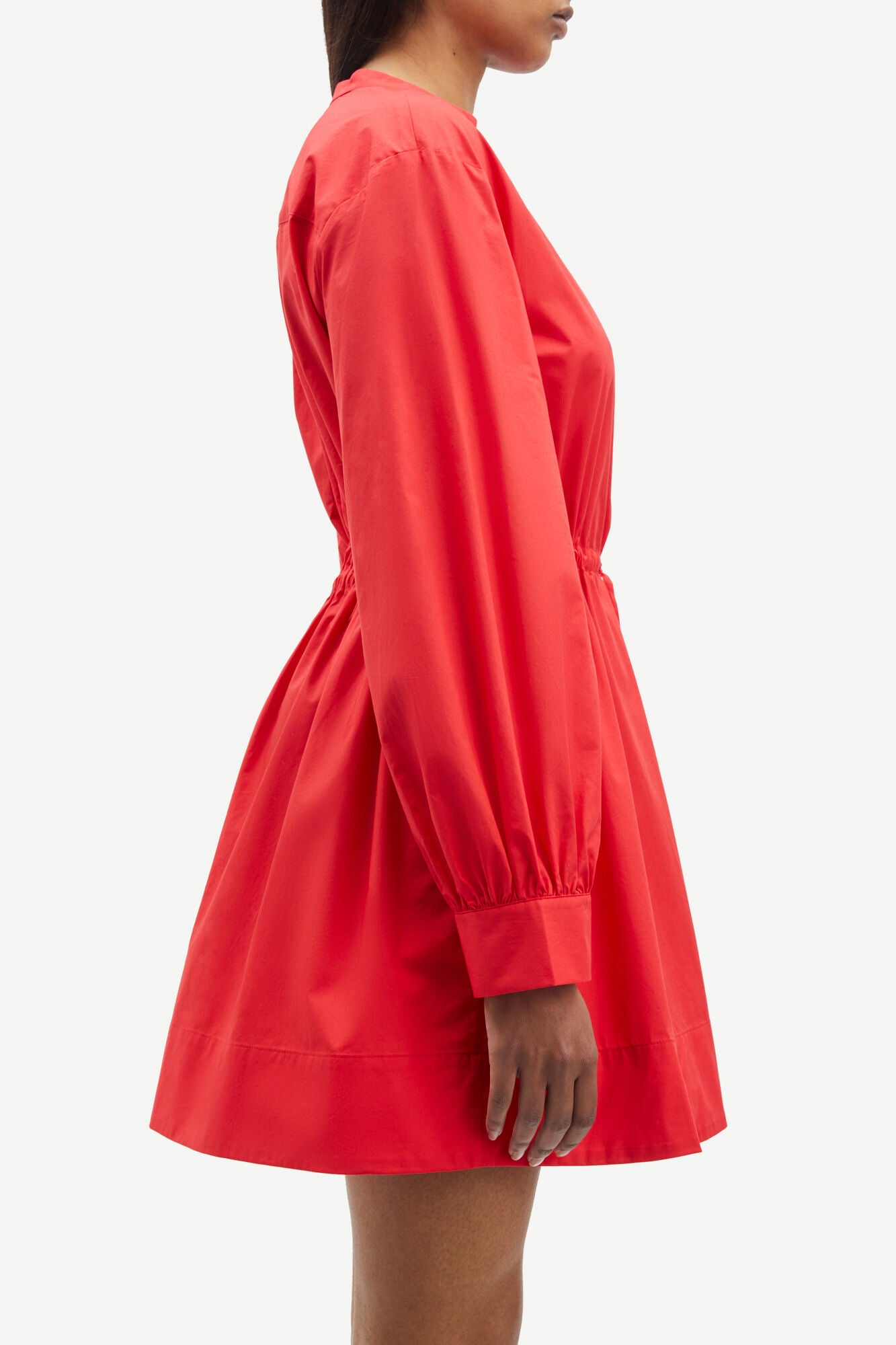 Long-sleeved minidress with a loose fit. Button and drawstring closure at the front. V-neck and side slit pockets. Gathered detailing at the back. Main material woven from 100% organic cotton. This product is made with GOTS certified organic cotton. Each stage of the supply chain has met strict social, environmental, and chemical requirements
