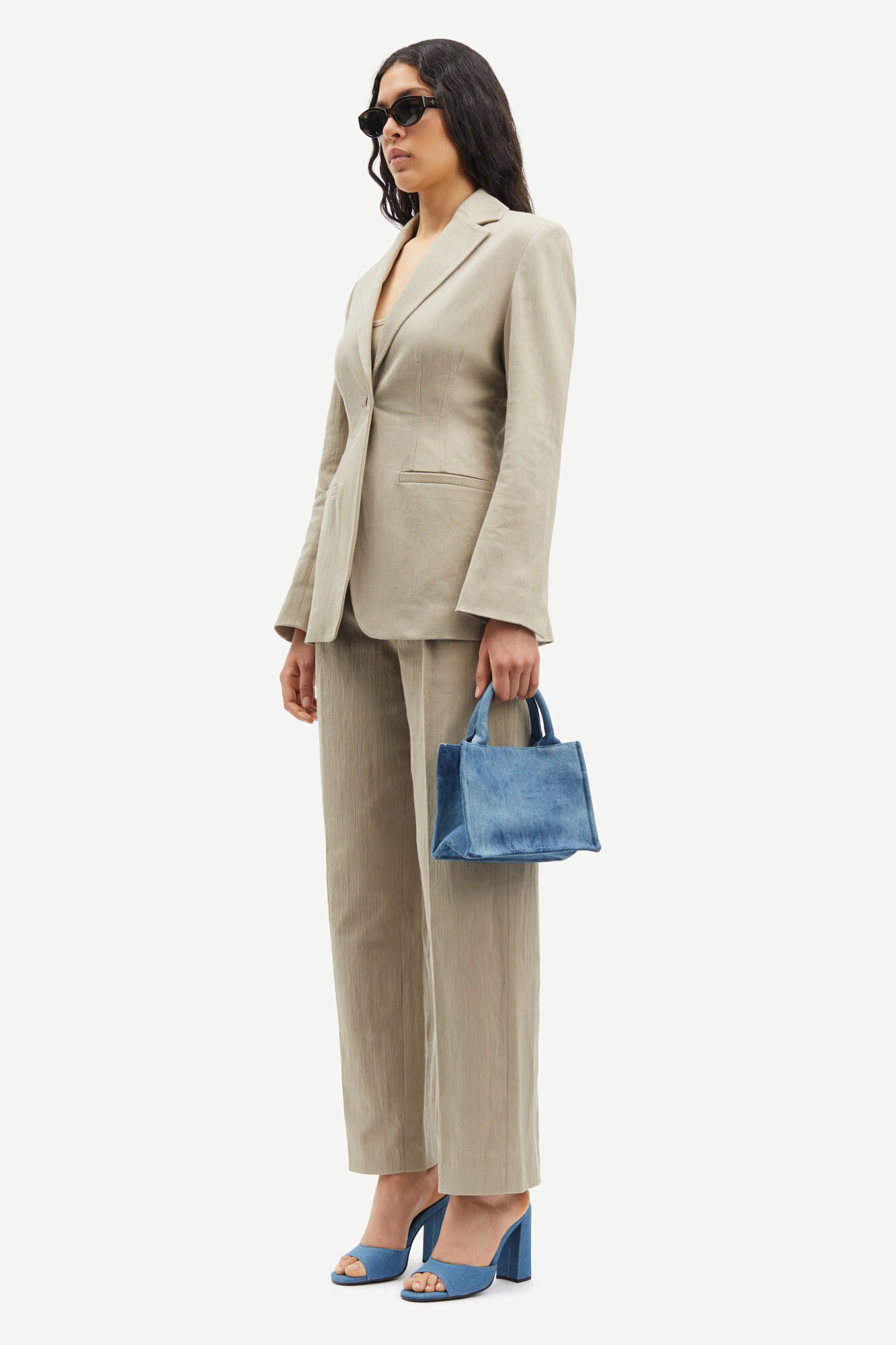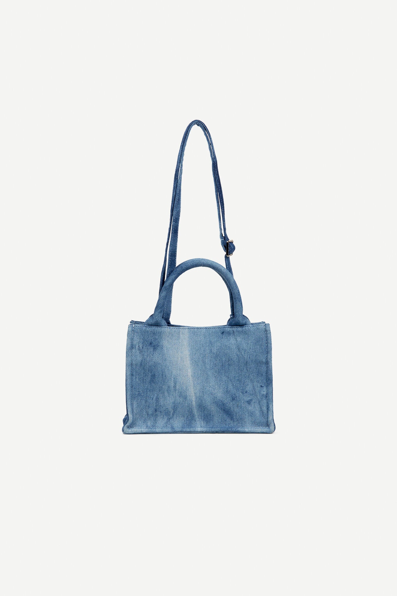 Small twill tote with adjustable shoulder strap. Visible top stitches. Magnetic closure with push button. Zipped pocket on the inside. Embroidered Samsøe Samsøe branding on the front. Please note that each piece is unique in its pattern. Lining made from 100% cotton. Main material made from cotton-blend.
