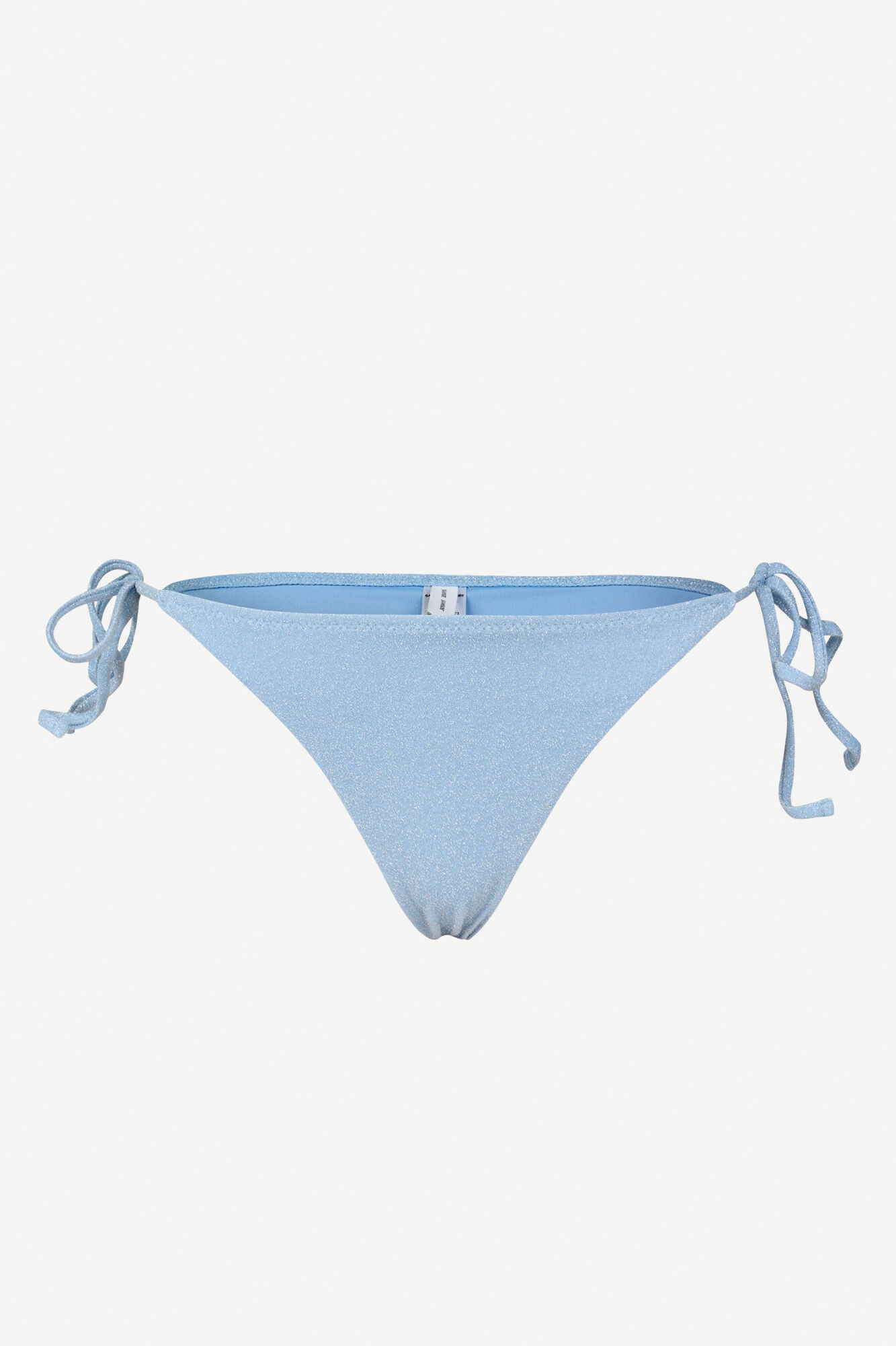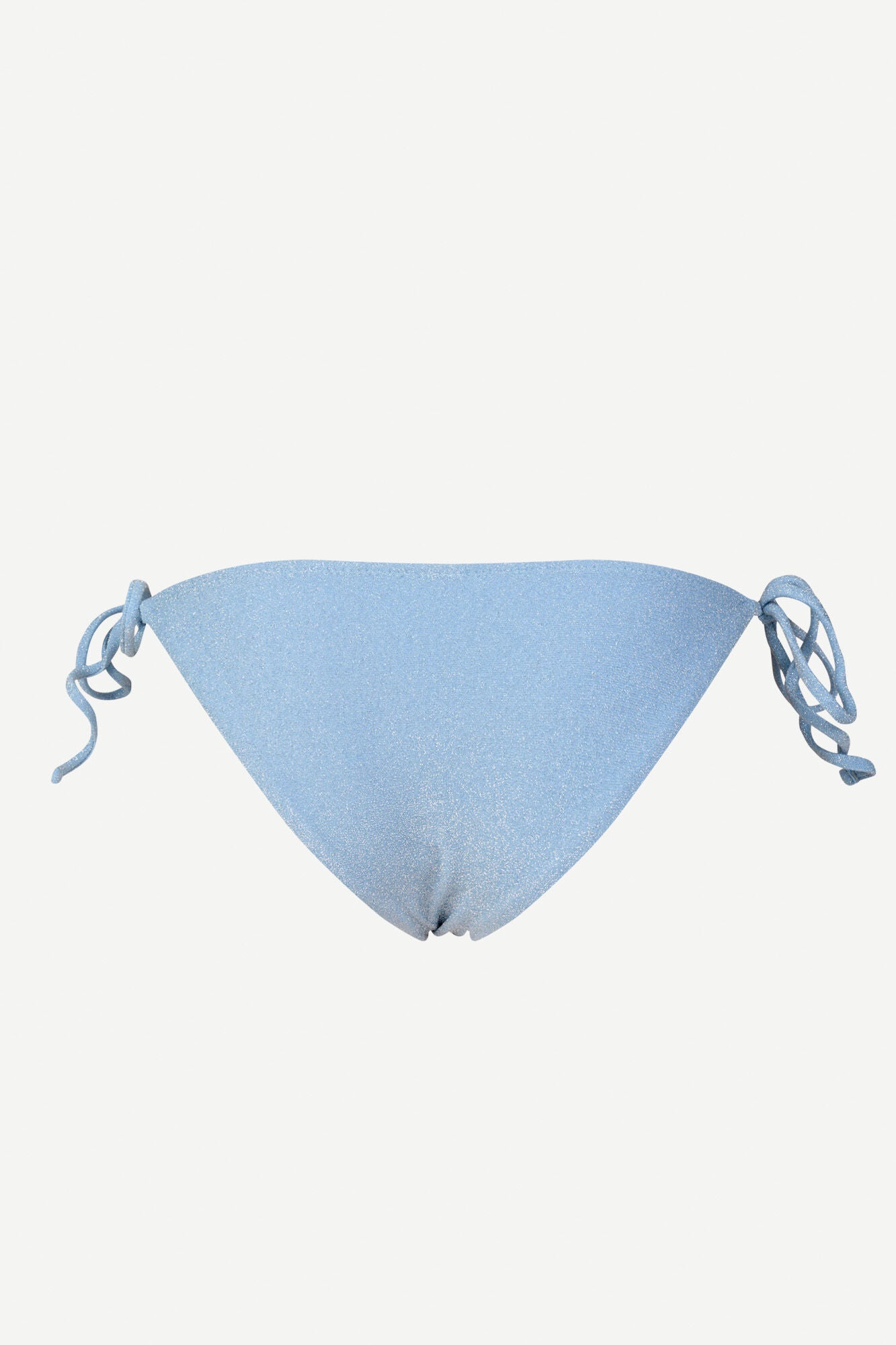 Bikini bottoms with metallic fibres. Self-tie closure on the sides. Offers minimal coverage. Fully lined. Main material made from an elastic recycled polyester-blend. This product contains recycled polyester derived from pre- and post-consumer waste.