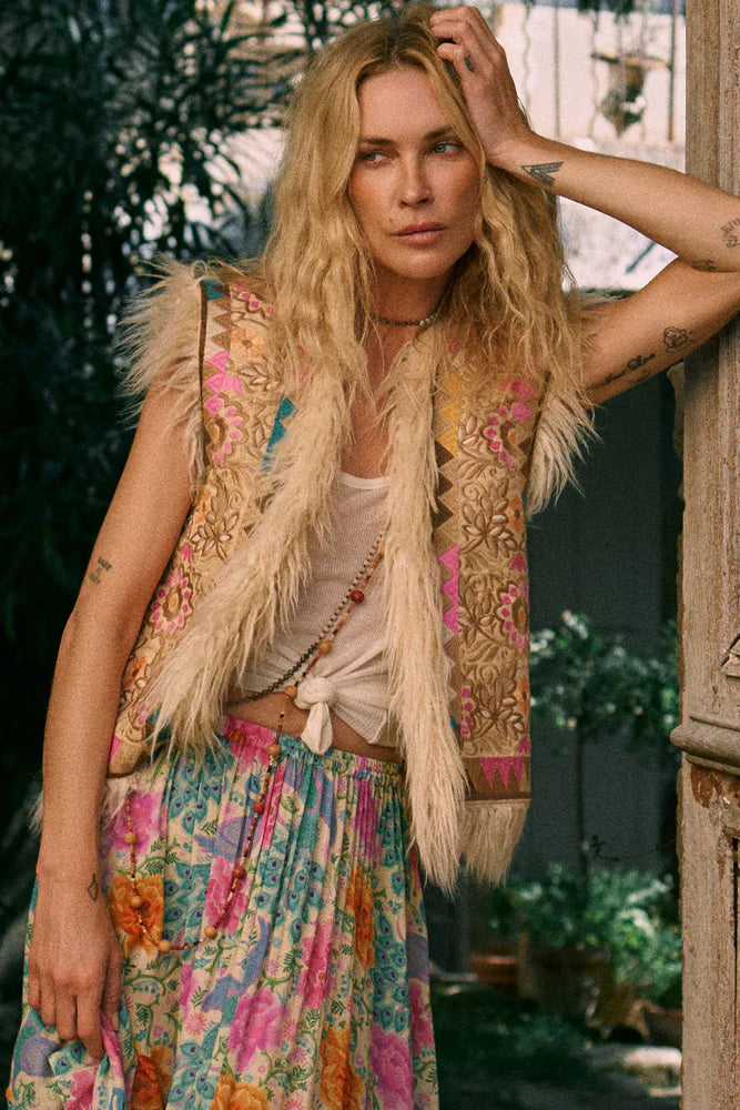 Layer your vest with a Spell blouse and denim for fresh market mornings or with a mini dress and lace up boots for the perfect festival fit.