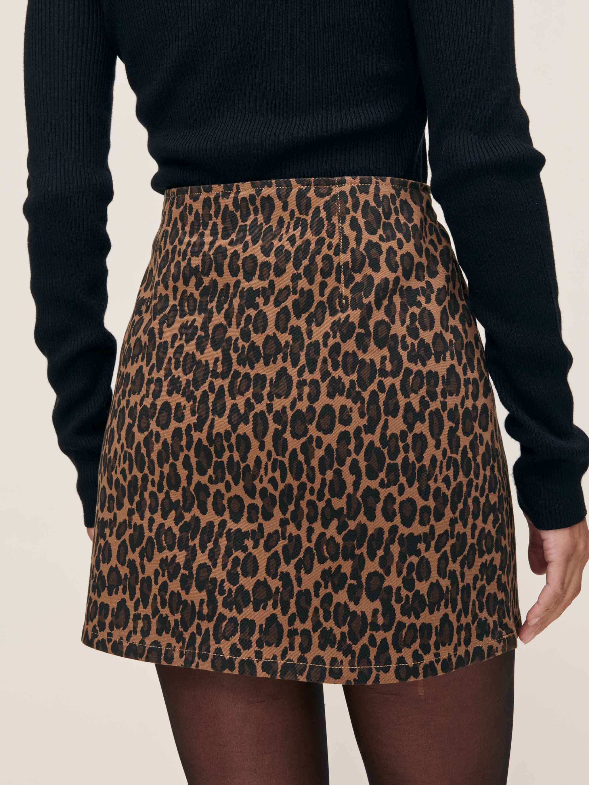 Leopard is the classic spotted pattern printed on our circular denim. It features an invisible zipper, tonal stitching, and a clean hem