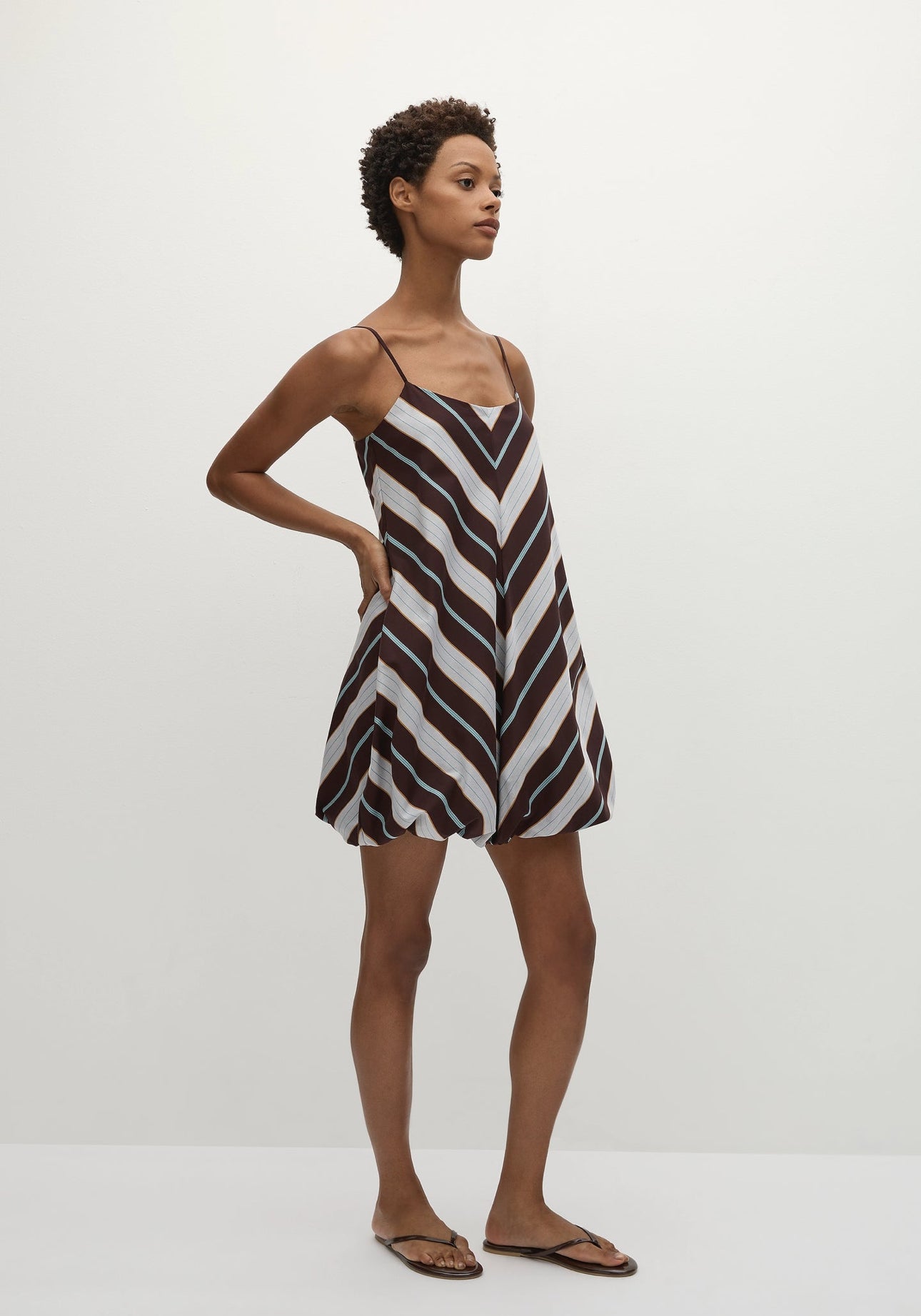 A signature FAITHFULL silhouette, reimagined with new elevated details and designed from a 100% organic cotton. Yarn-dyed in a Greek-inspired multi-colour stripe, bringing together tones of burgendy and baby blue, it features a rounded neckline with thin straps, adjustable in length, that is relaxed in fit through the upper body. It then falls into a voluminous silhouette with an oversized bubble skirt, elasticated at the cuff and cropping around the ankles. The perfect vacation companion, style with a simple sandal for long lunch wear.