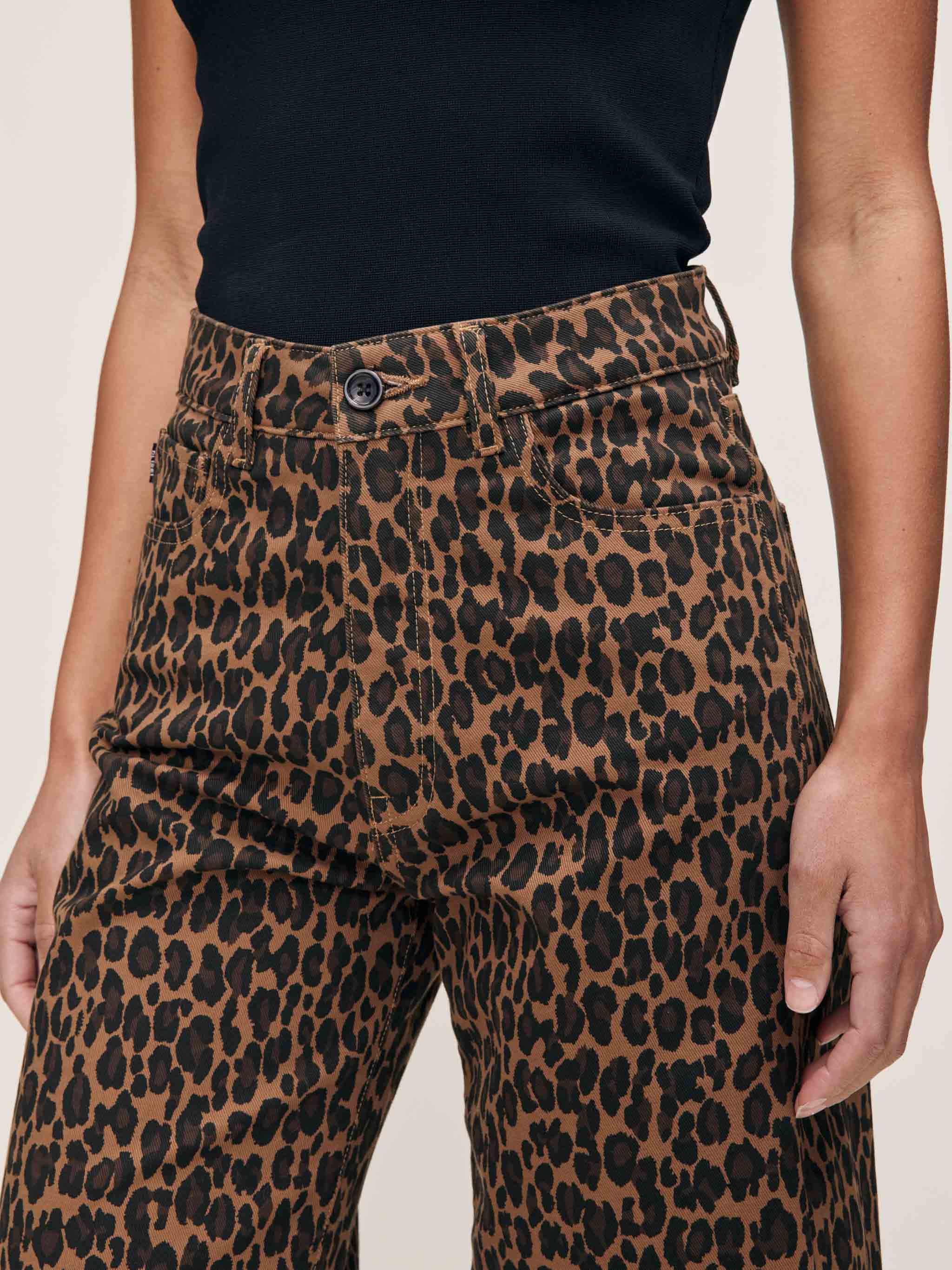 Leopard is the classic spotted pattern printed on our circular denim. It features brown horn buttons, tonal stitching, a clean hem and a black back patch.