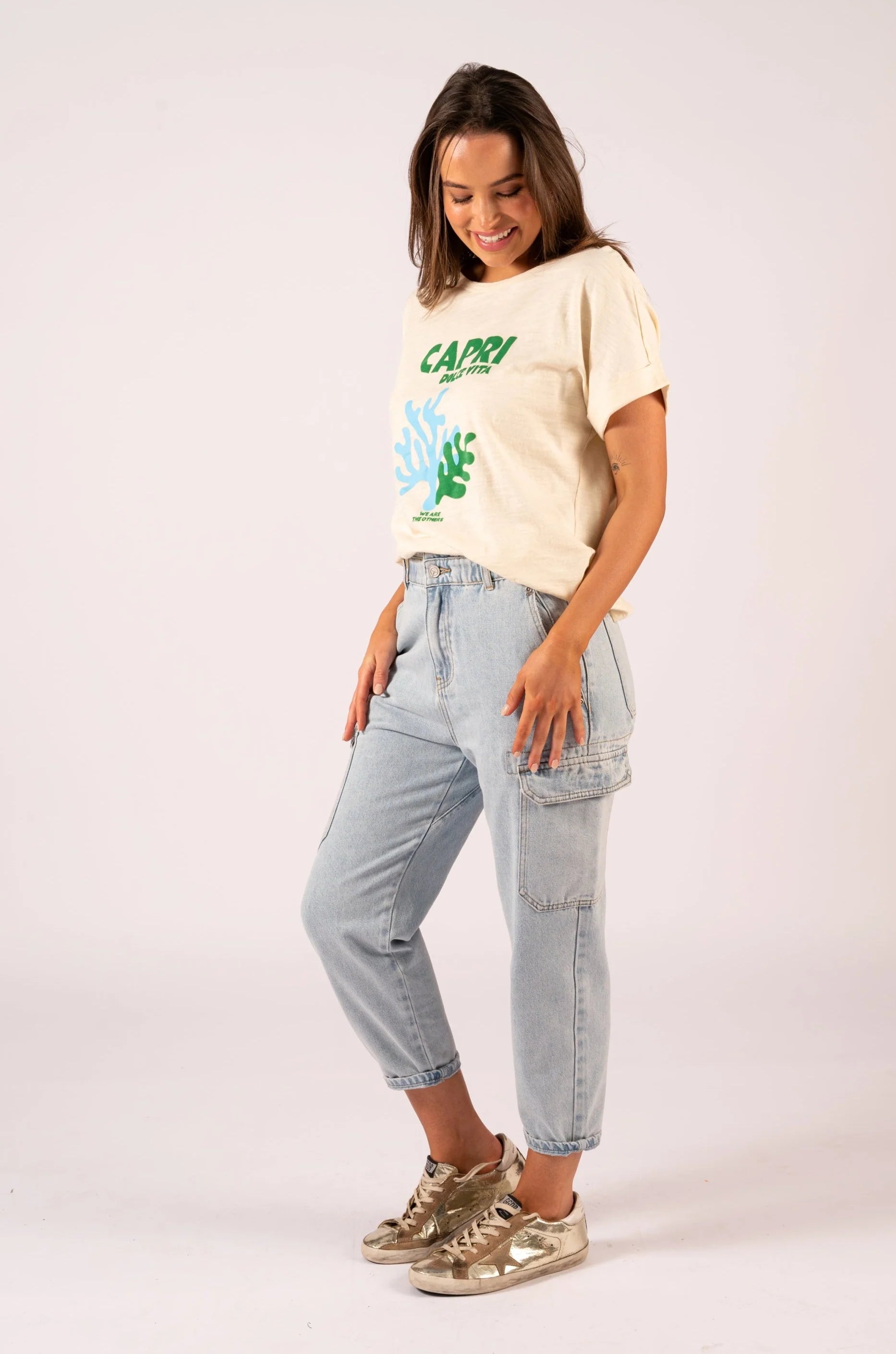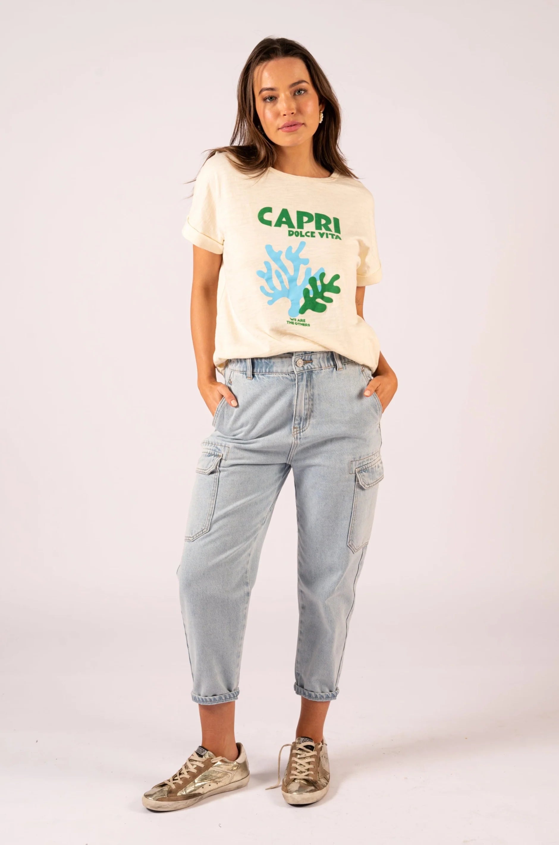 Featuring a capri relaxed tee, the "We Are The Others" brand offers a comfortable and stylish addition to your wardrobe. Made from high-quality materials, this tee provides a relaxed fit that is perfect for everyday wear. Enjoy a versatile and effortless look with this must-have tee.